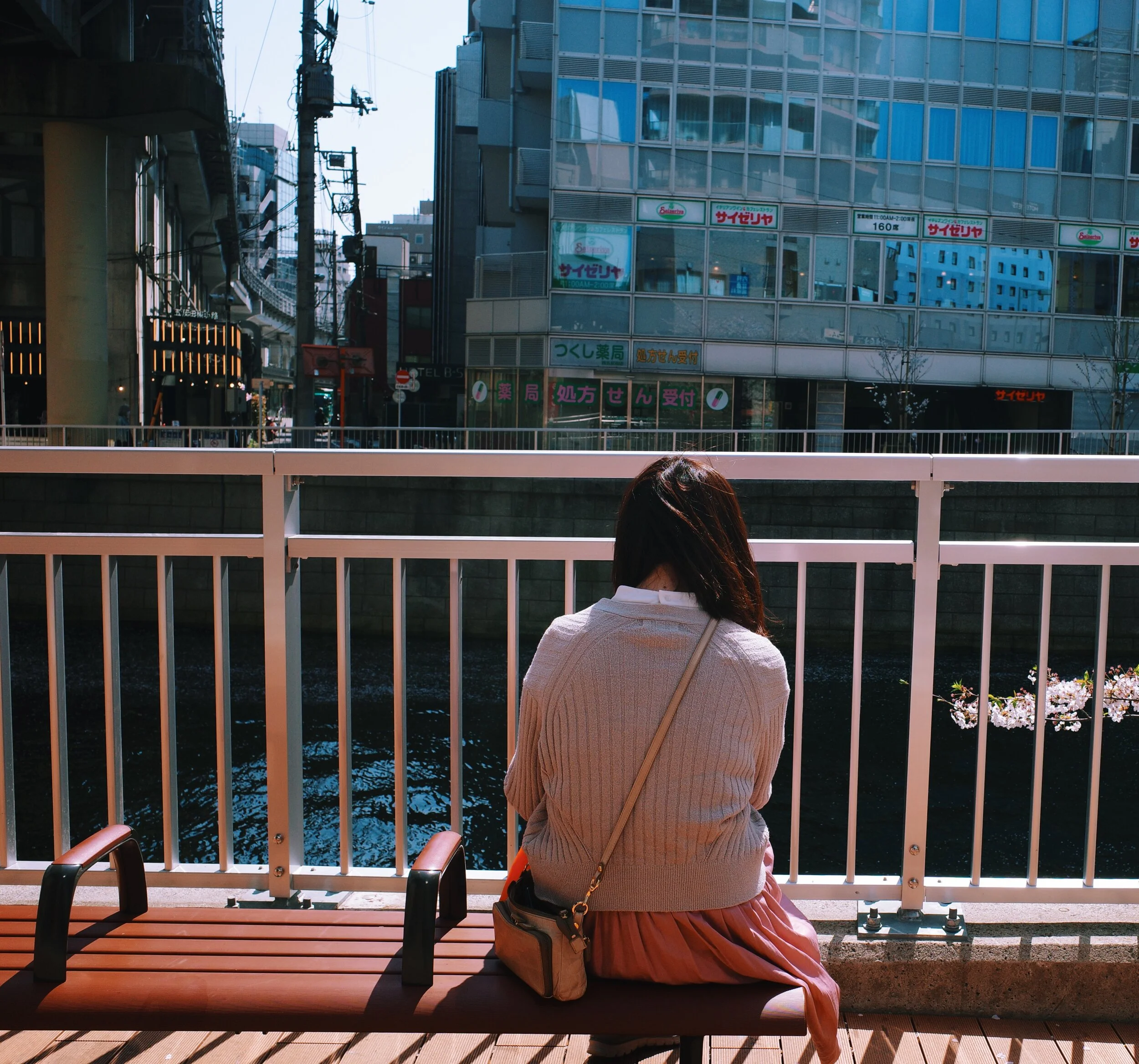 mei is from osaka. she had planned to meet her friends near the famous meguro river in tokyo to see the cherry blossoms.